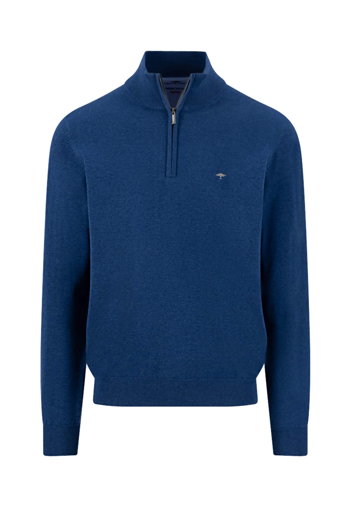 The sporty 1/4 zip stand collar gives this knitted sweater a distinctive look and underlines its casual character. Made from 100% soft cotton, it offers exceptional comfort and breathability – ideal for transitional weather or cool days. The finely textured knit provides a premium feel and makes it a versatile companion for everyday wear. Elasticated cuffs and a relaxed fit complete the functional design, while the subtle FYNCH-HATTON logo on the chest adds a stylish touch.
