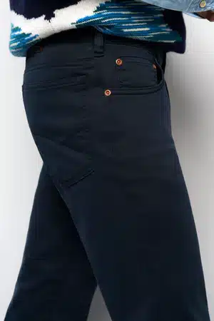 Sporty five-pocket trousers made of high-performance satin – exceptional comfort combined with a casual look! The exclusive organic cotton feels warm and wonderfully soft on the skin, promising exceptional comfort. The super stretch fabric offers maximum freedom of movement. With their elegant colours and outstanding finish, these trousers will enhance any outfit, even on cold days. FAIR & sustainably produced in Europe! ”Loose fit” design Leg opening 36 cm / 14 1/4 inch cm length 34 inch Circular waistband finishing for perfect fit in the waistband area Only elastic denim materials from comfort stretch to super stretch 7 Waistband hook loops in total due to extra Waistband hook loop with M|5 logo Additional coin pocket in the right front pocket (inside) (innen) Every pair of trousers comes with a blue M|5 snap hook (front left) Fairly produced in our own european factory All special effects are made individually by hand (no laser!) – hand finished Article number: 3729610600