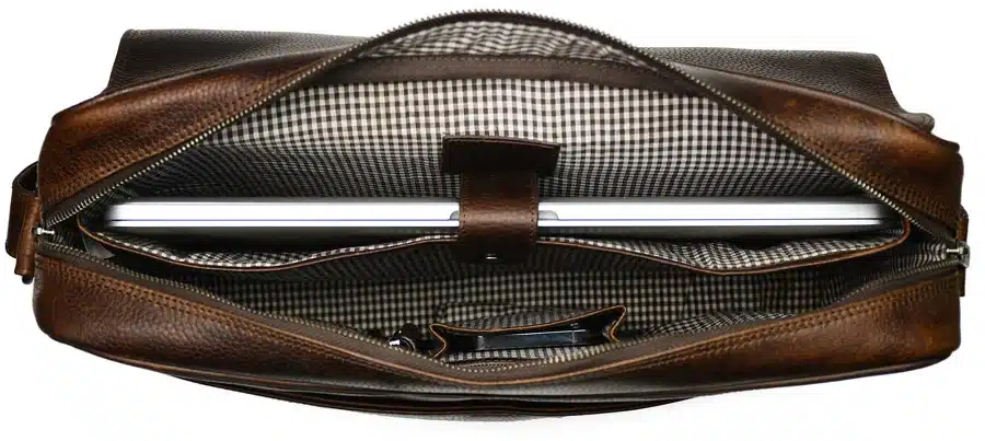 The Ashburton leather satchel will be a smart addition to your weekly workwear wardrobe. It is the perfect size to carry your laptop and paperwork. It also has an internal phone pocket, internal zip pocket and padded laptop sleeve. The shoulder strap is adjustable. Size H325mm x W420mm x D120mm weight 1.7kg