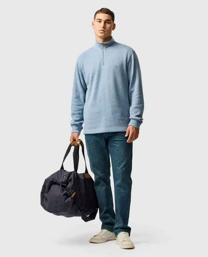 A mid weight mock neck sweat, in a cotton French rib. The fabric features a softly brushed surface for ultimate comfort and warmth. Simple and straight to the point, the breathable cotton fabric is an ideal transeasonal weight and makes layering easy.