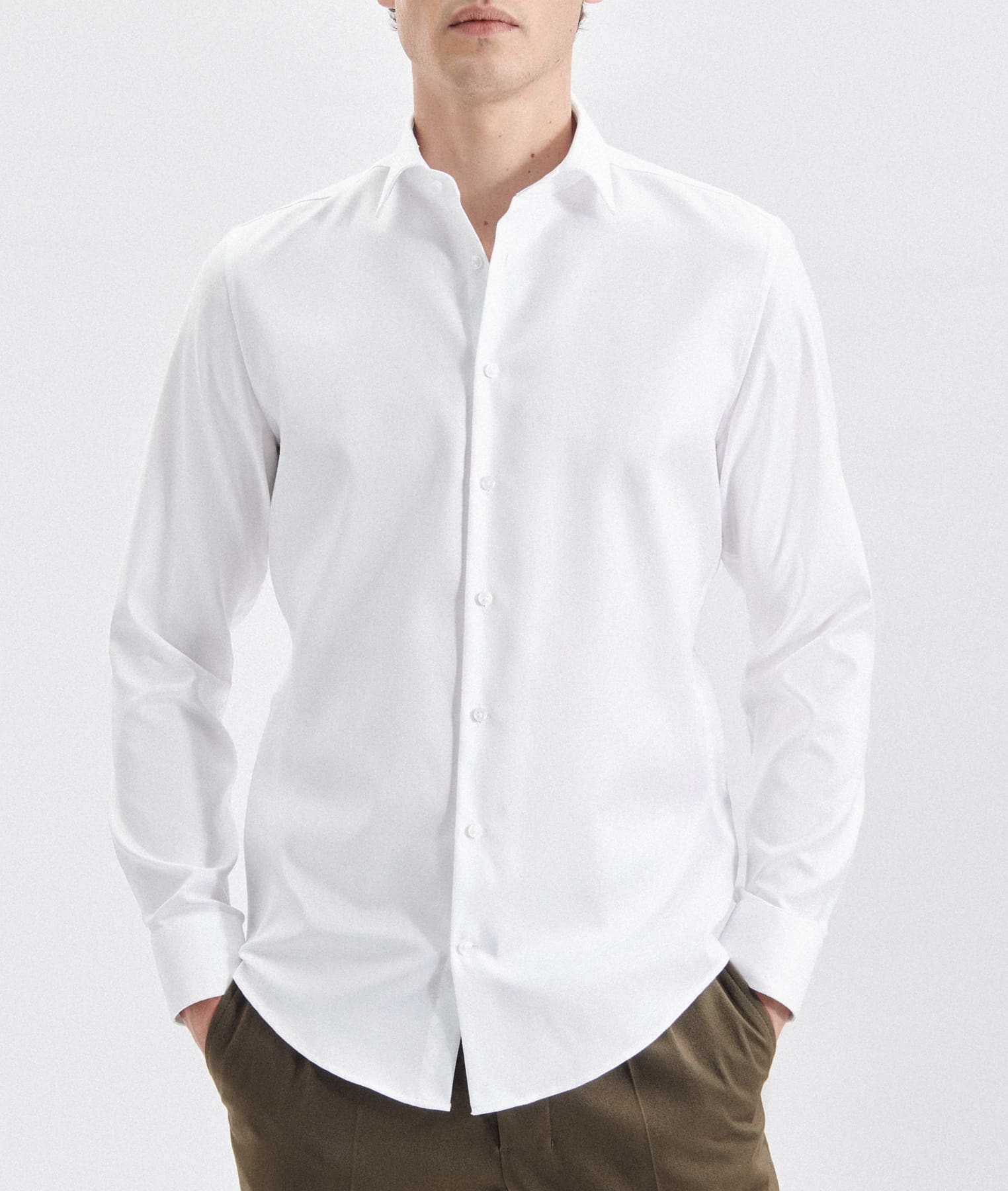 This Seidensticker Business shirt is made from non-iron poplin cotton. It has been cut in the shaped fit and has a Kent-collar with tonal floral trim on the inside collar and cuffs. Made from sustainable cotton. Available in Light Blue and White.